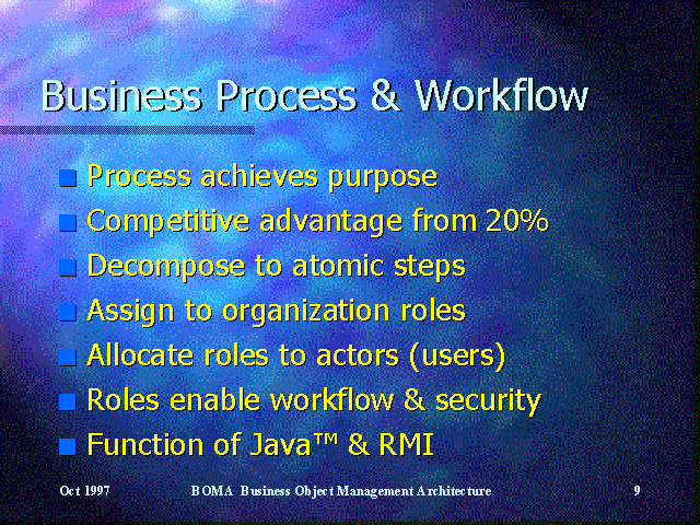 The generic process objects use this information to direct process instances to the appropriate users (workflow), and to ensure that only those users having the required role can access the process (security).