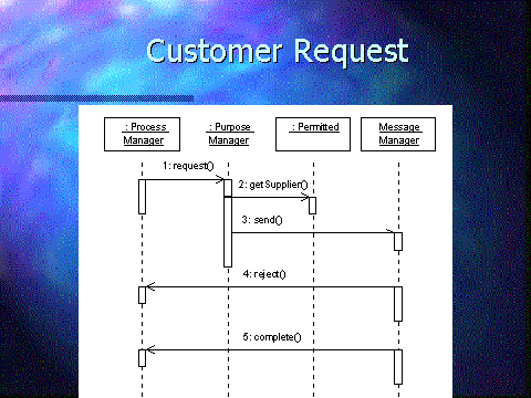 When the process manager requests that a particular purpose be achieved, the purpose manager determines if there is a contract to do so with any suitable party. If there is, the it instructs the message manager to communicate the request to the party. Should there be more than one suitable party, the purpose manager may ask several to respond to the request.